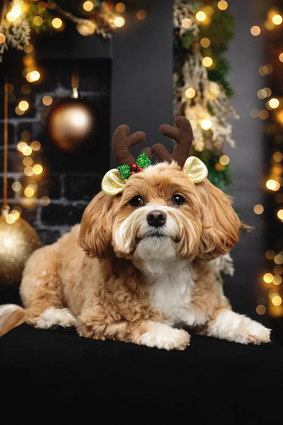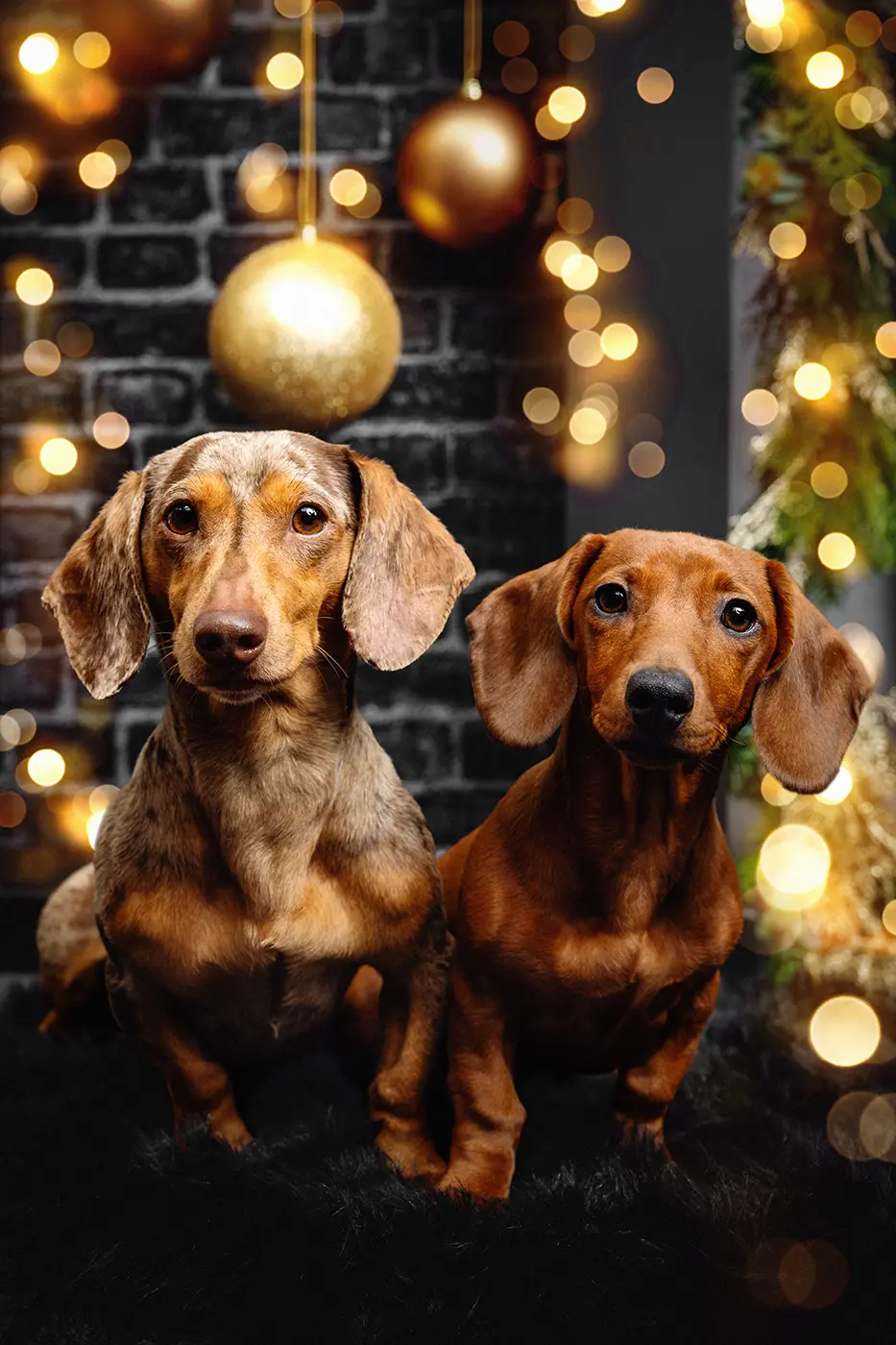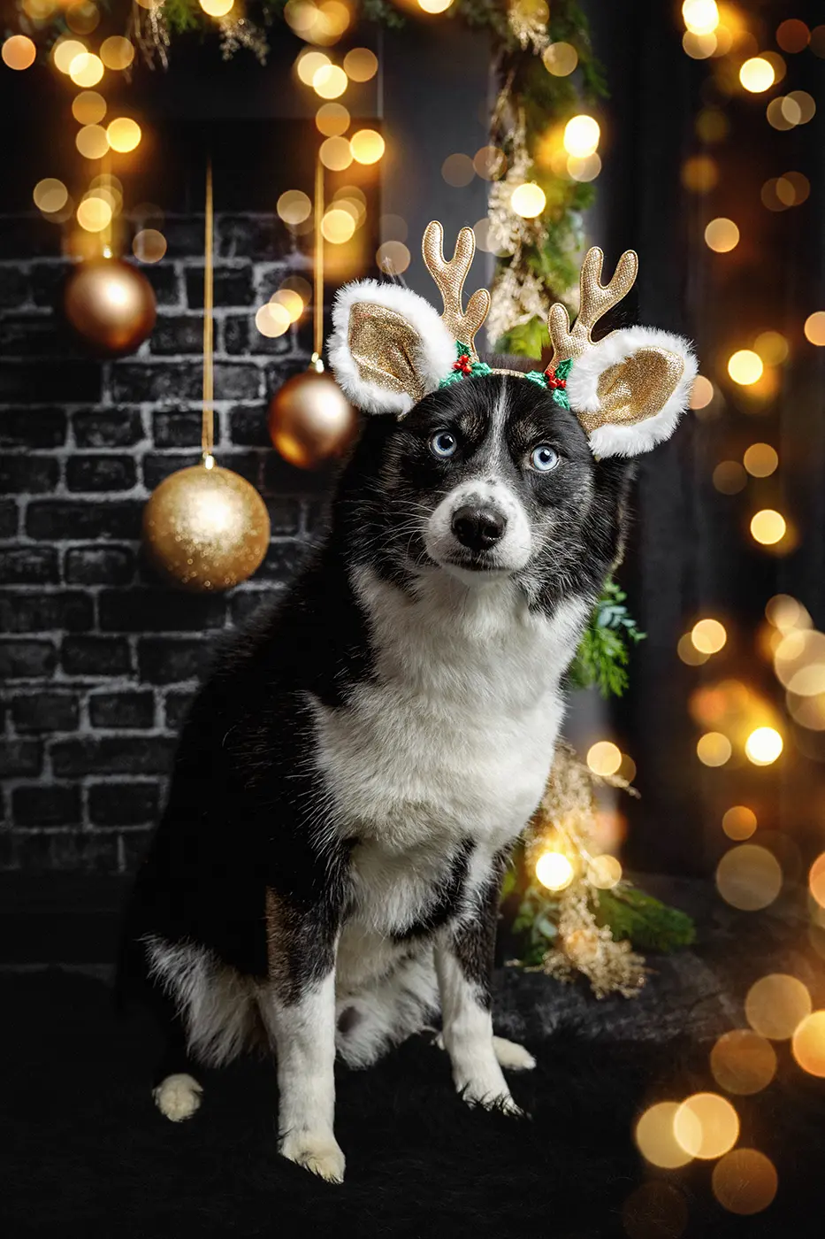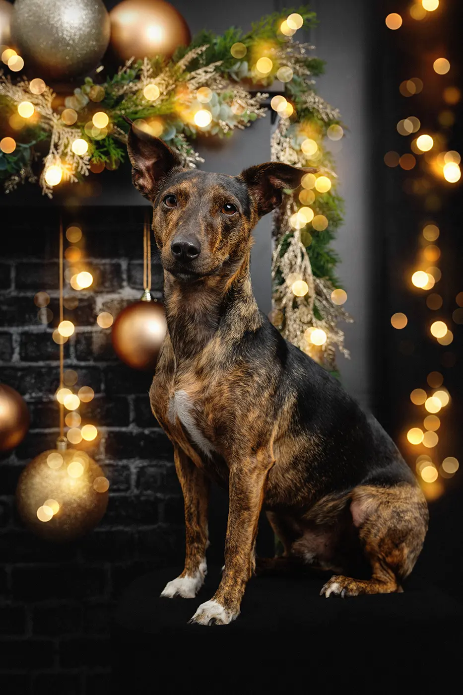 Für dieses Weihnachts Fotoshooting für Hunde hatten wir ein Set kreiert, das zum Verweilen und Wohlfühlen einlud. Uns war wichtig, dass die Hunde die Ruhe der Vorweihnachtszeit ausstrahlen:
