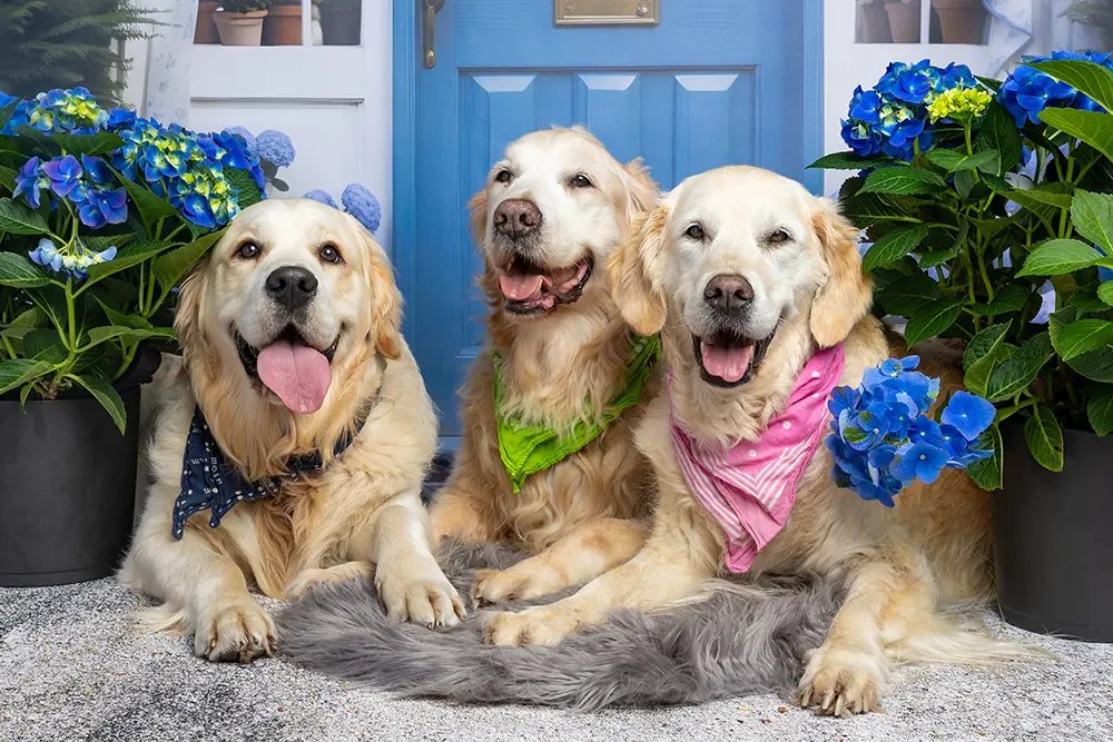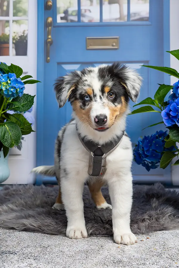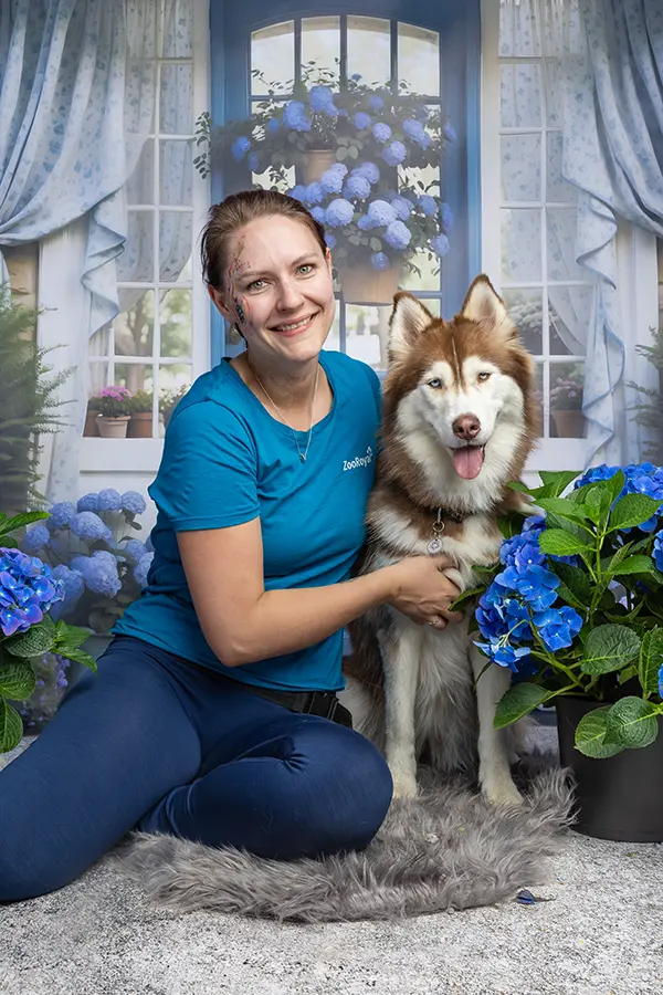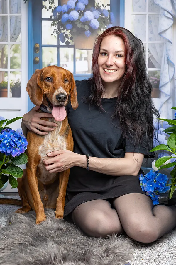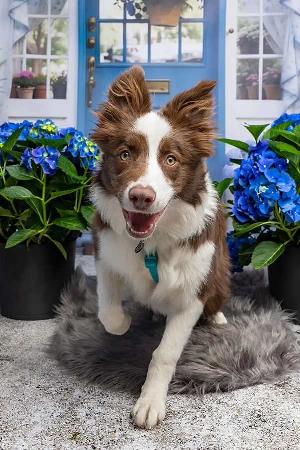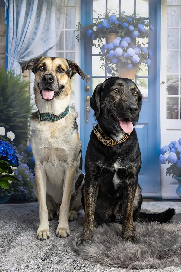Bei unserem Hundefotoshooting ZooRoyal Niendorf im Juli 2024 wurde es nie langweilig! Für dieses besondere Sommerfest-Shooting hatten wir uns ein charmantes Set überlegt: Eine elegante blaue Haustür, eingerahmt von leuchtend blauen Hortensien.